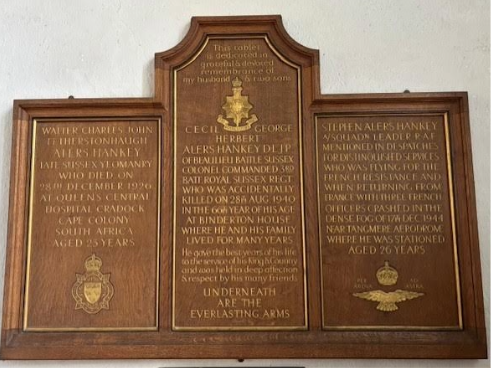 I subsequently paid my respects at McBride’s grave in Chichester and also visited St. Andrew’s Church in West Dean to see the plaques there dedicated to Stephen Hankey as described to me by Lesley.